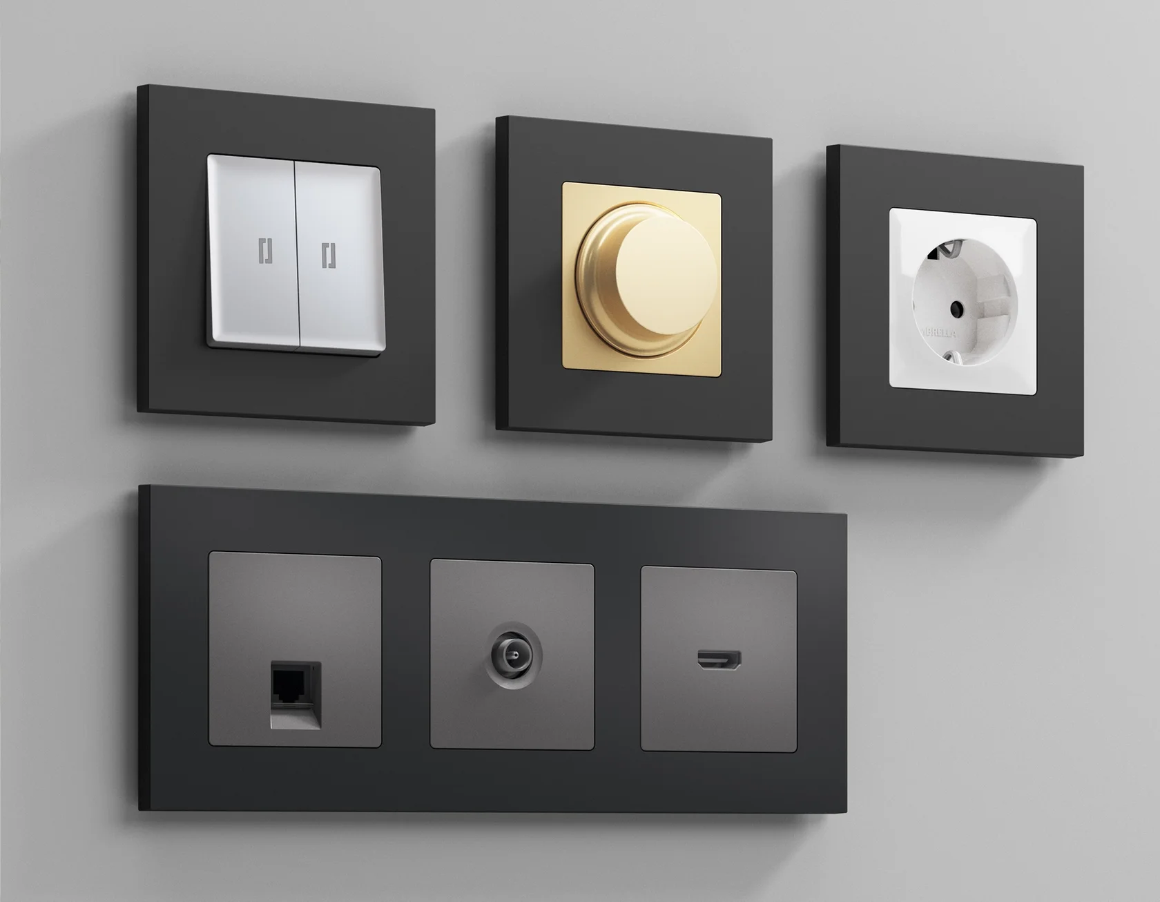 Продукция Ambrella Volt представлена в модульном исполнении, что позволяет гибко настраивать внешний вид и функциональность. Вам будет легко заменить лицевую панель, рамку или механизм, найдя идеальное сочетание цветов.